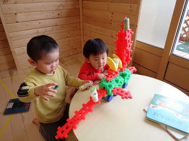 お友達のアイディアに気が付き真似したり、一緒に考えたりしながら