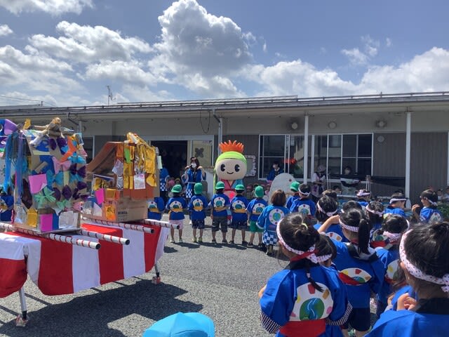 「わっしょい!」の掛け声に合わせて、4歳児の子ども達が神輿を担いで登場です。