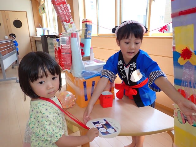 そしてお遊戯場には、みんなが楽しみにしているお店屋さんが並びました。