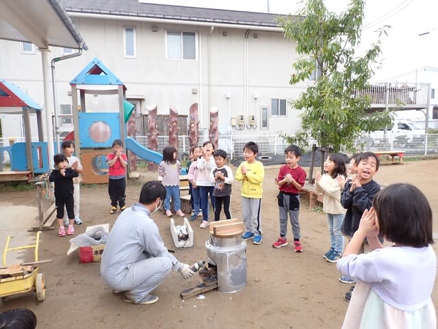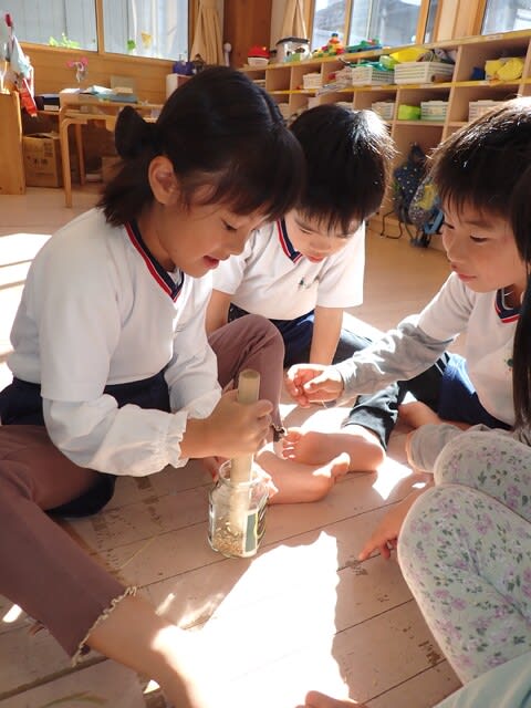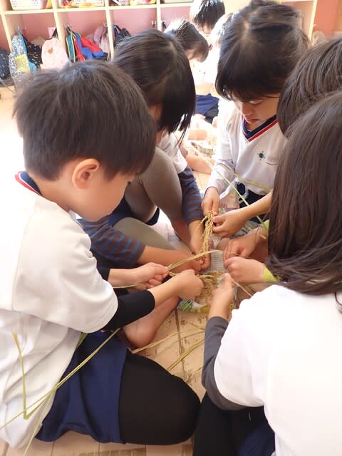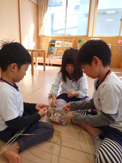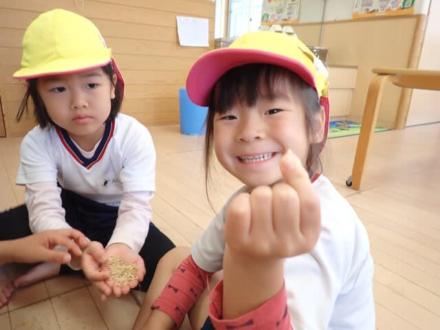 保育園に戻り、稲刈りの時に頂いた大事な稲、一粒一粒を