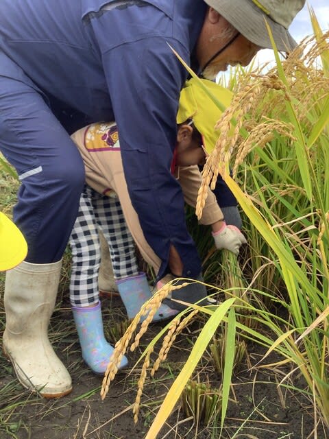 子ども達と一緒に取り、手で精米に挑戦してみました。