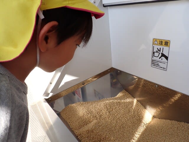 精米する前の米を見て、「ちゃいろいね。たべているおこめとちがうなぁ~」