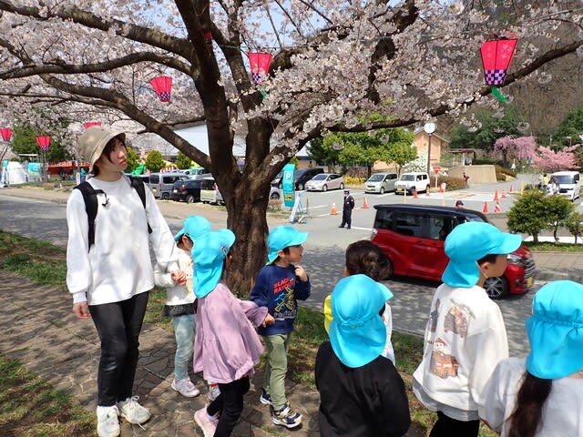 5歳児のお友達が馬見ヶ崎川沿いの桜を見に出発!