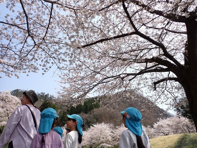 一面に咲き誇っている桜に子ども達もびっくり!