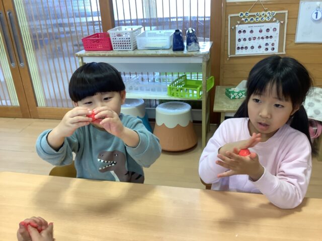 丁度いい力加減を探りながら、丸めていた子ども達です。